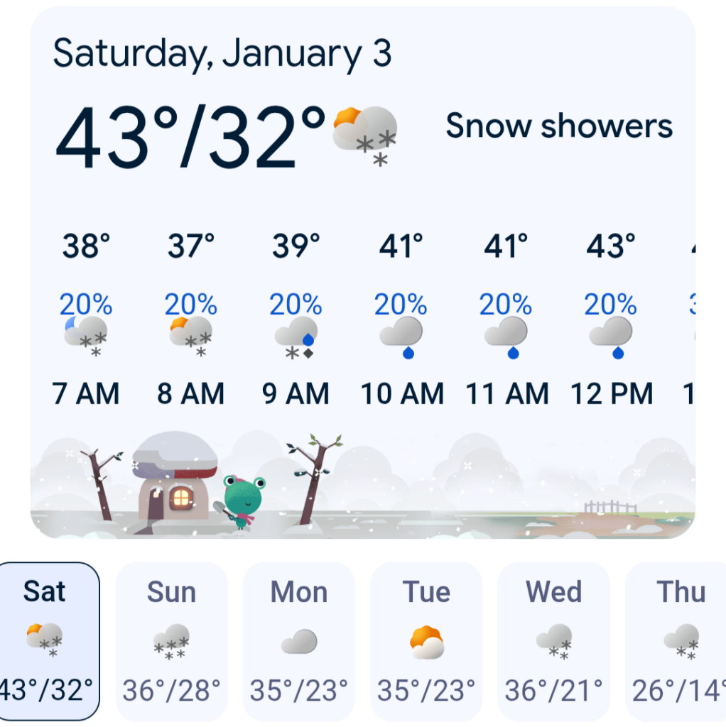 My parents live across town. They’ve been here almost 24 years. I already know from visiting through the years that nobody gets the weather predictions right. That’s not what I want fixed here. I really just want it to snow.