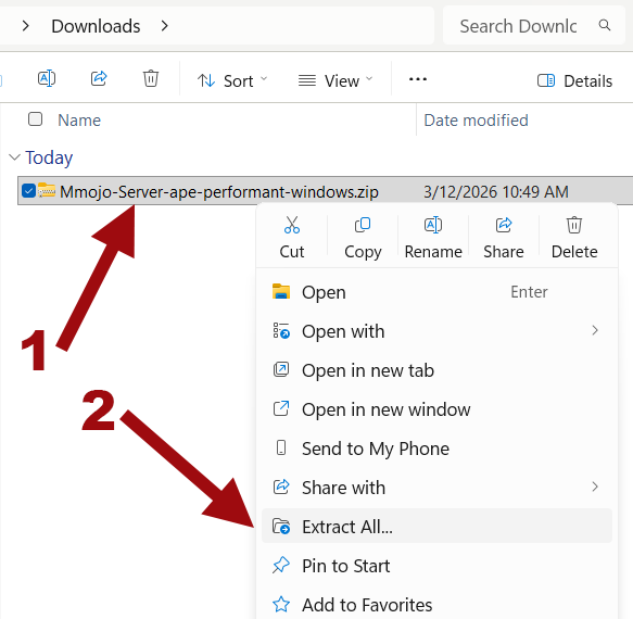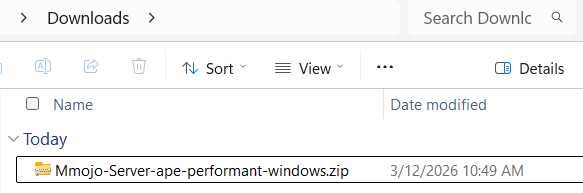 - Find the “Mmojo-Server-ape-compatible-windows.zip” file in your Downloads folder.